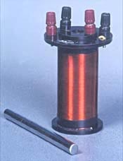: Consisting of primary coil of insulated copper wire wound upon cylinder with terminals, secondary coil wound upon cylinder into which primary fits.